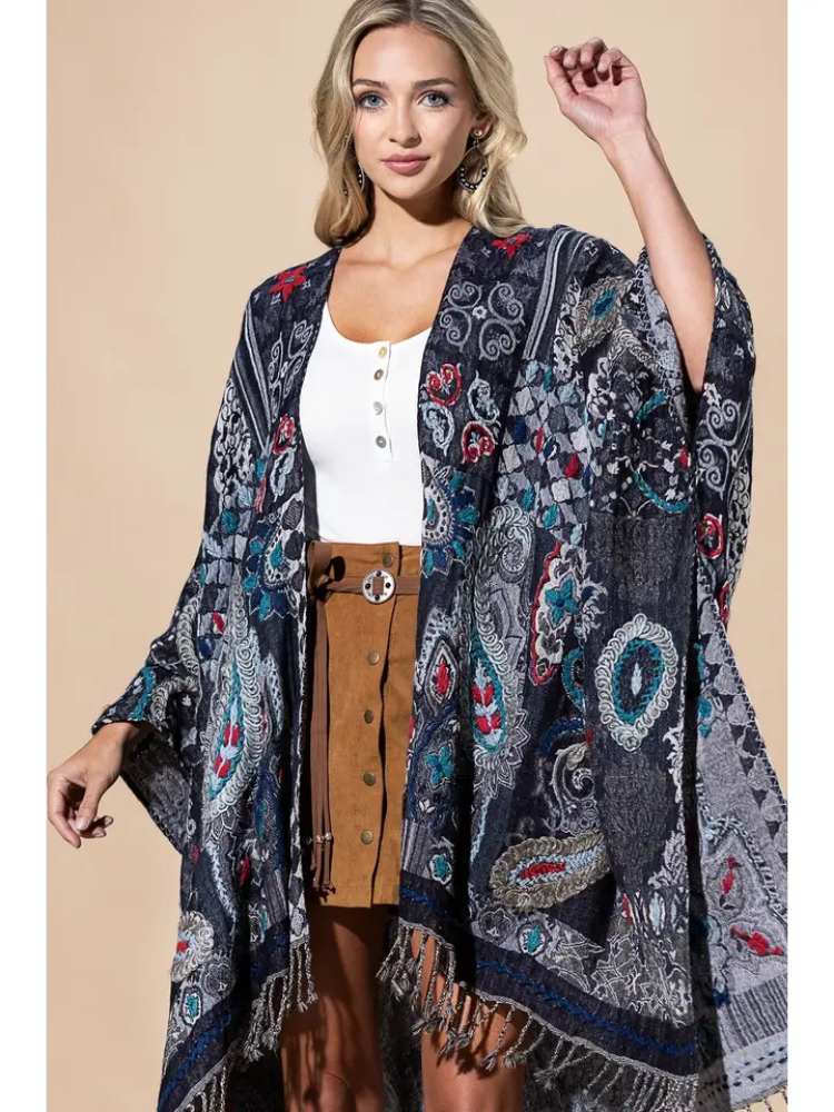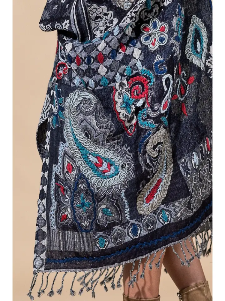 *ماريونت* دللي نفسكِ بأناقة حرفية مع هذه الروانا الصوفية المصنوعة يدويًا. كل قطعة مصنوعة بدقة متناهية، متألقة بنقوشها الدقيقة وألوانها الزاهية التي تضفي لمسة فريدة ومميزة على خزانة ملابسكِ. نسيج الصوف الناعم يوفر الدفء والراحة، مما يجعله مثاليًا للارتداء فوق طبقات الملابس في الطقس البارد. مزينة بشراشيب رقيقة على طول الحافة، تجمع هذه الروانا بسلاسة بين سحر البوهيمي وحرفية الصنع الخالدة. *100% صوف *الطول تقريبًا 37 بوصة، العرض 53 بوصة، الشراشيب 2 بوصة، الوزن 23.41 أونصة