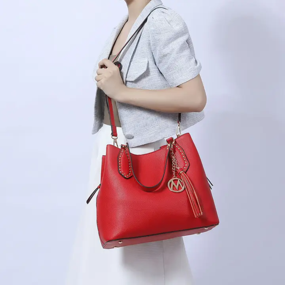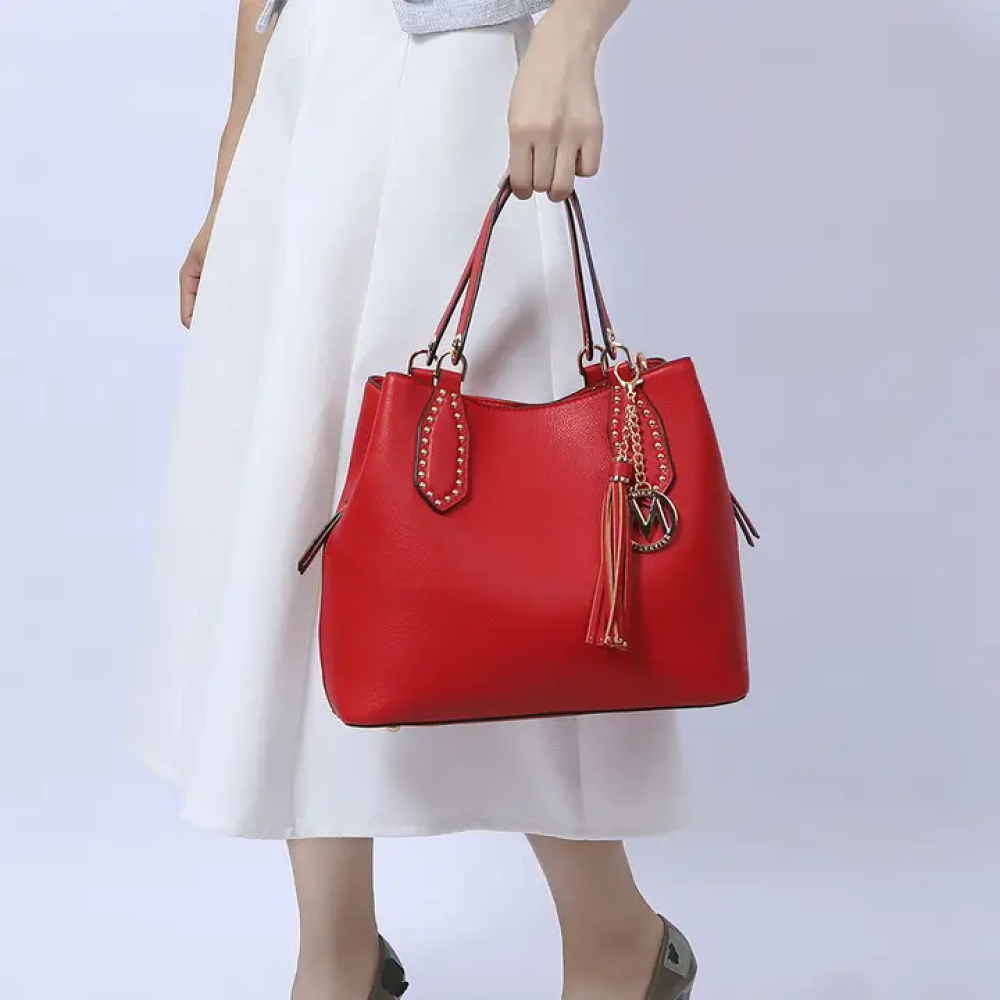 نقدم حقيبة اليد الأنيقة المصنوعة من جلد نباتي عالي الجودة مع بطانة من القماش الناعم. تم تصميم هذه القطعة متعددة الاستخدامات بزخارف ذهبية اللون لافتة للنظر وتتميز بإغلاق بسحاب للحفاظ على متعلقاتك آمنة. تضيف الشرابة الكبيرة القابلة للإزالة وسلسلة المفاتيح M لمسة من الأناقة، بينما تضمن الأرجل المعدنية بقاء الحقيبة في وضع مستقيم عند وضعها. ستجد في الداخل جيوبًا مفتوحة وأخرى بسحاب للتنظيم، ويوفر الجزء الخارجي جيبين جانبيين واسعين بسحاب. - مصنوعة من جلد نباتي عالي الجودة مع بطانة من القماش. الميزات: - مصممة بزخارف ذهبية اللون أنيقة. - إغلاق بسحاب علوي. - شرابة كبيرة الحجم مزخرفة قابلة للإزالة وسلسلة مفاتيح M. - أقدام معدنية للحفاظ على المحفظة في وضع مستقيم. الجيوب: - الجزء الداخلي: يتضمن جيوبًا مفتوحة وسحاب لسهولة التنظيم. - الجزء الخارجي: جيوب جانبية واسعة بسحاب على كل جانب وجيب خلفي بسحاب للوصول السريع. -الأبعاد: 13.3 بوصة طول × 11.4 بوصة ارتفاع × 5.5 بوصة عمق. -ارتفاع المقبض: 5.5.