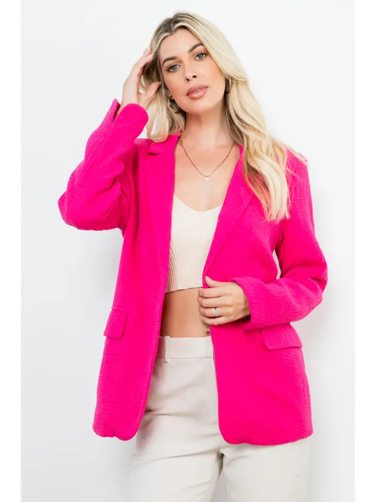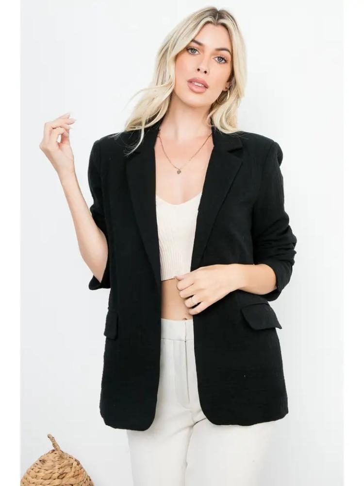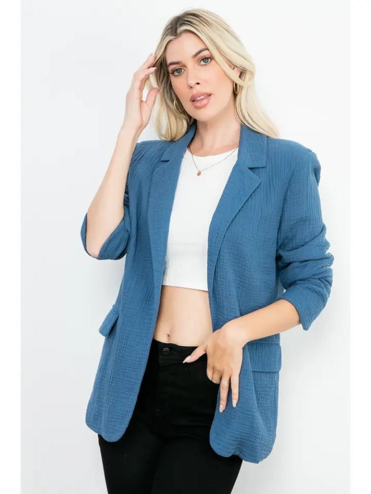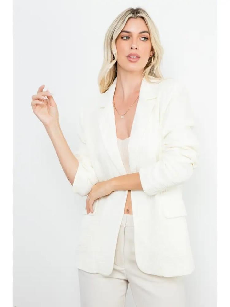 بليزر مفتوح من الأمام من قماش الشاش المزخرف