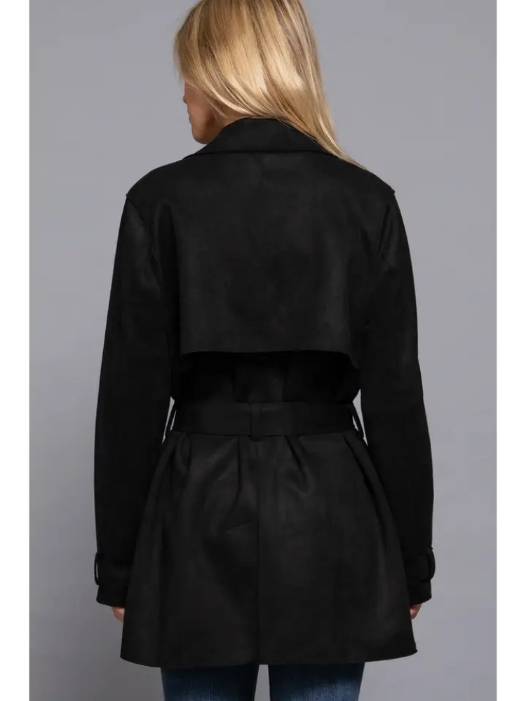 معطف ترنش من الجلد السويدي الصناعي بأكمام طويلة