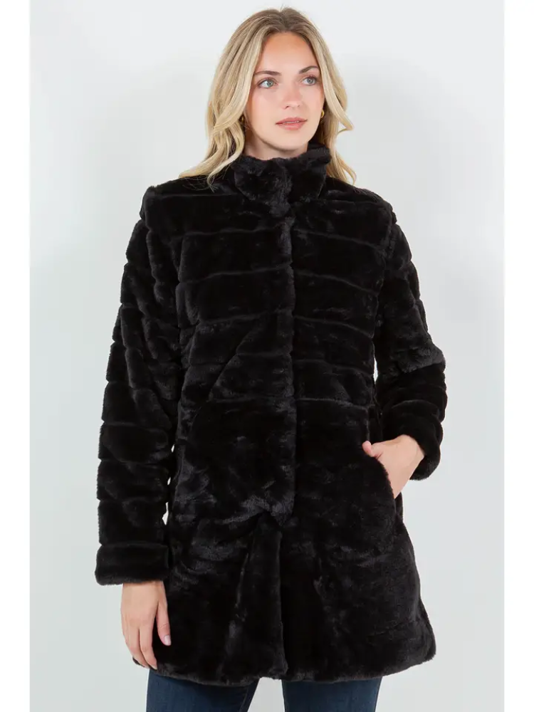 جاكيت معطف طويل فاخر من الفرو الصناعي