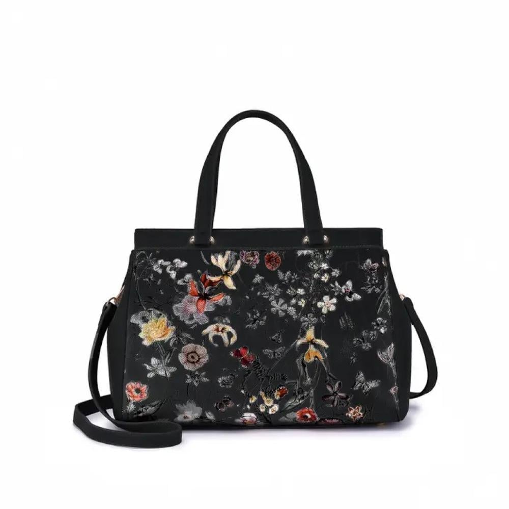 حقيبة يد مزدوجة بنقشة زهور وحزام كتف قابل للفصل/التعديل. تفاصيل المنتج: - نوع الإغلاق الرئيسي: سحاب - الأبعاد: طول 33 سم × عرض 13 سم × ارتفاع 25 سم - طول المقبض: 35 سم - طول المقبض: 14 سم - الجزء الخارجي: جيب واحد بسحاب - الجزء الداخلي: جيبان بسحاب، وجيبان مفتوحان - طريقة العناية: تنظيف البقع - جلد نباتي 100% HB22138