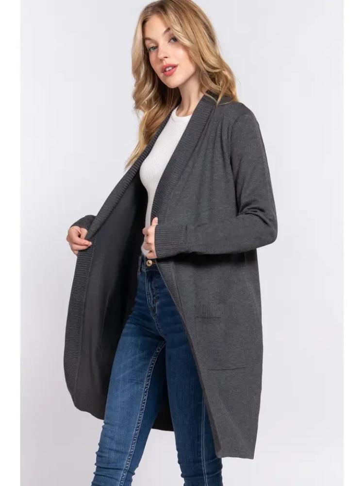 سترة كارديجان بأكمام طويلة وشريط مضلع مفتوح