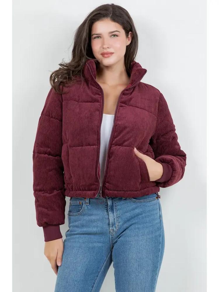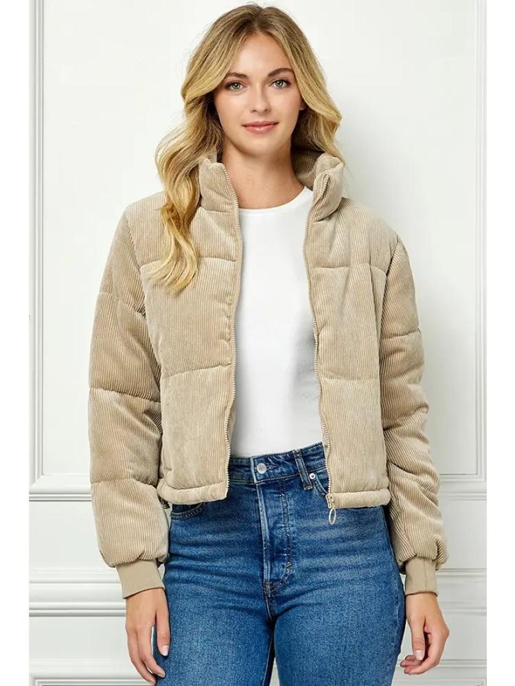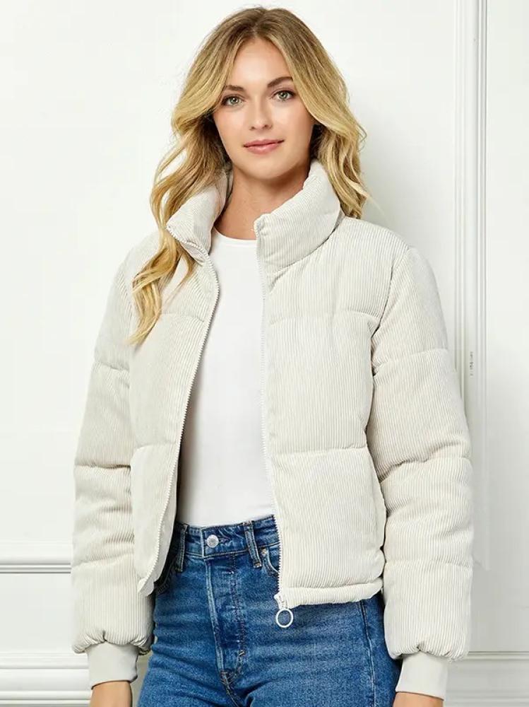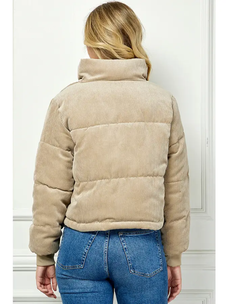سترة منفوخة من قماش مخملي مبطن